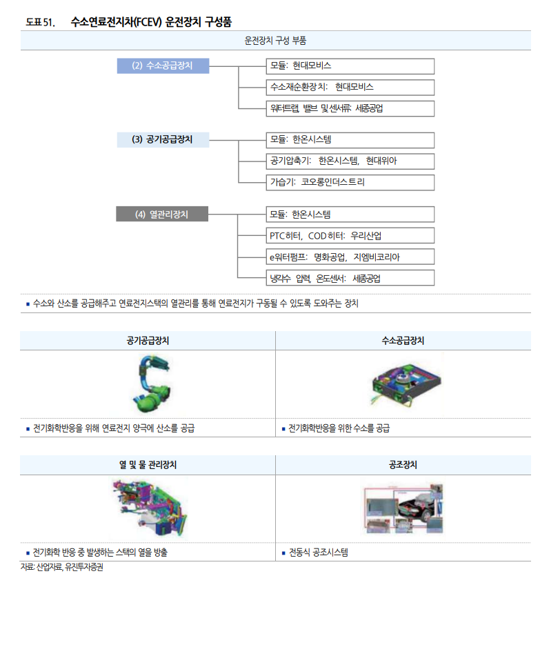 수소차의 핵심 부품과 국내공급업체들은 다음과 같다.